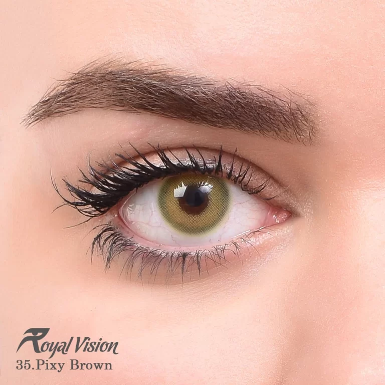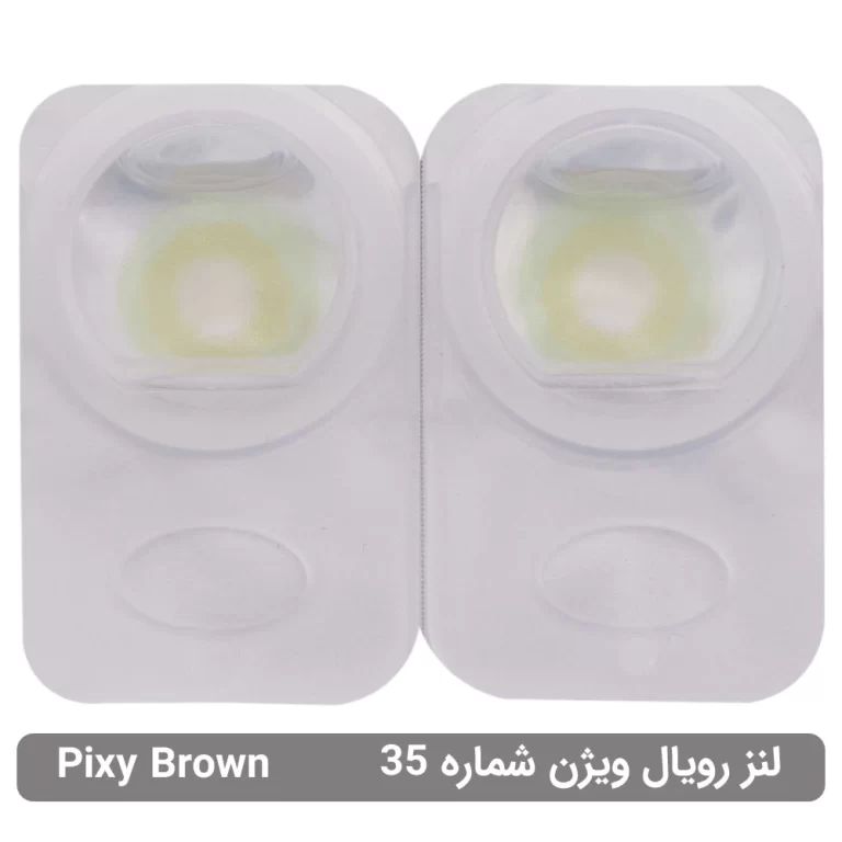 لنز رنگی رویال ویژن روزانه 100 ساعته، شماره 35 مدل Pixy Brown هاله دار سبز عسلی